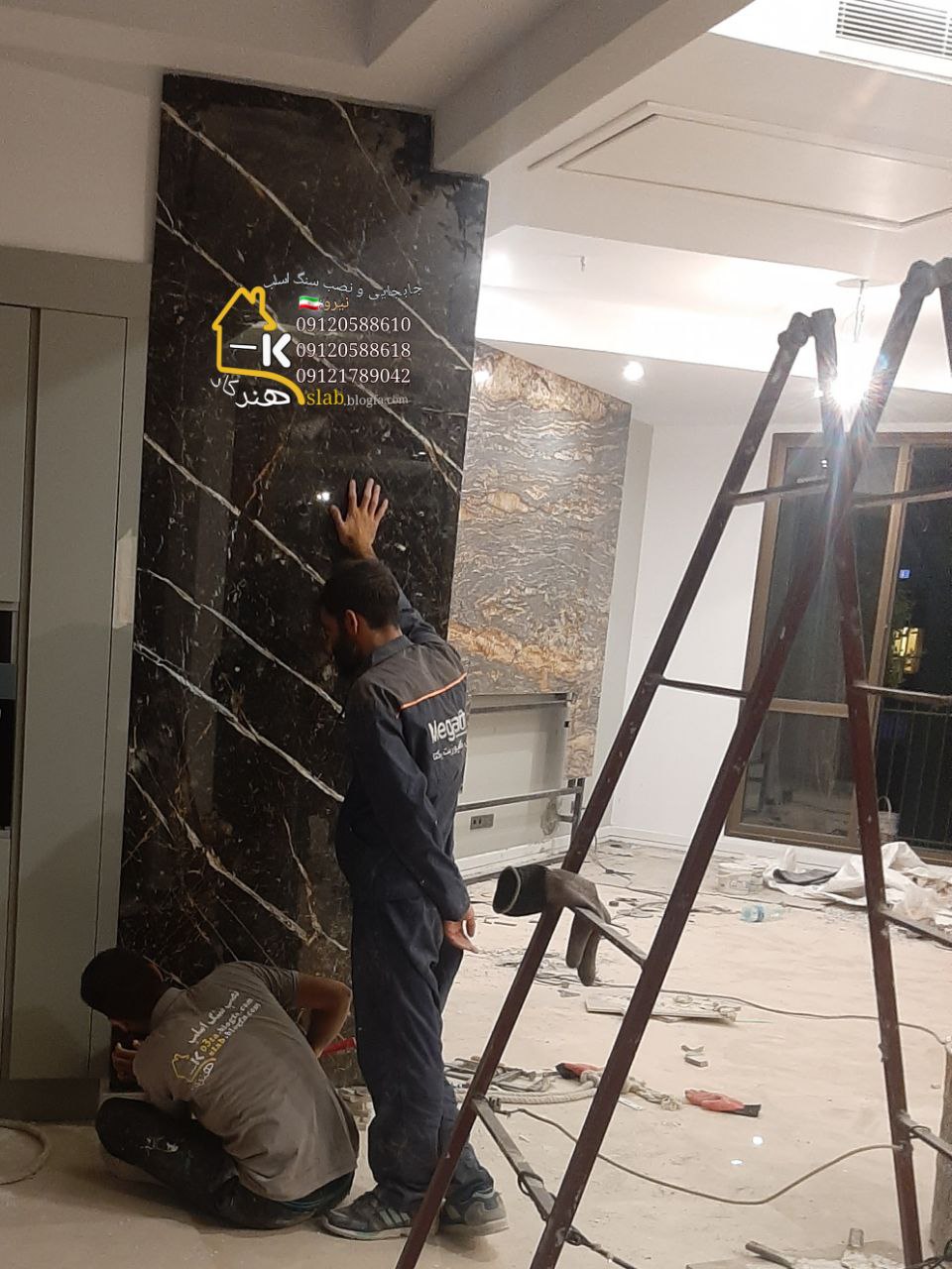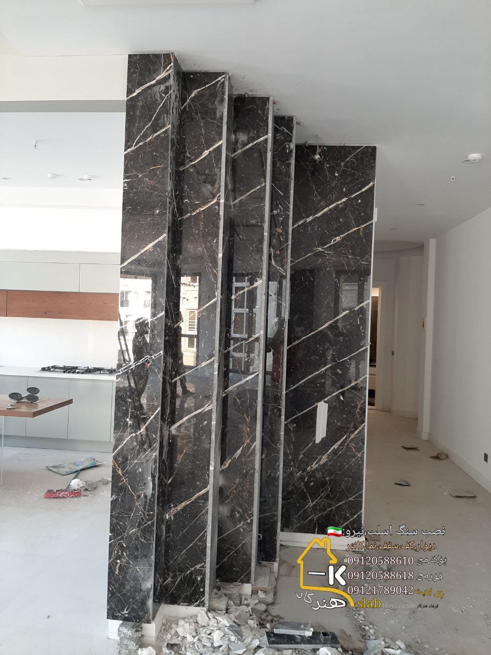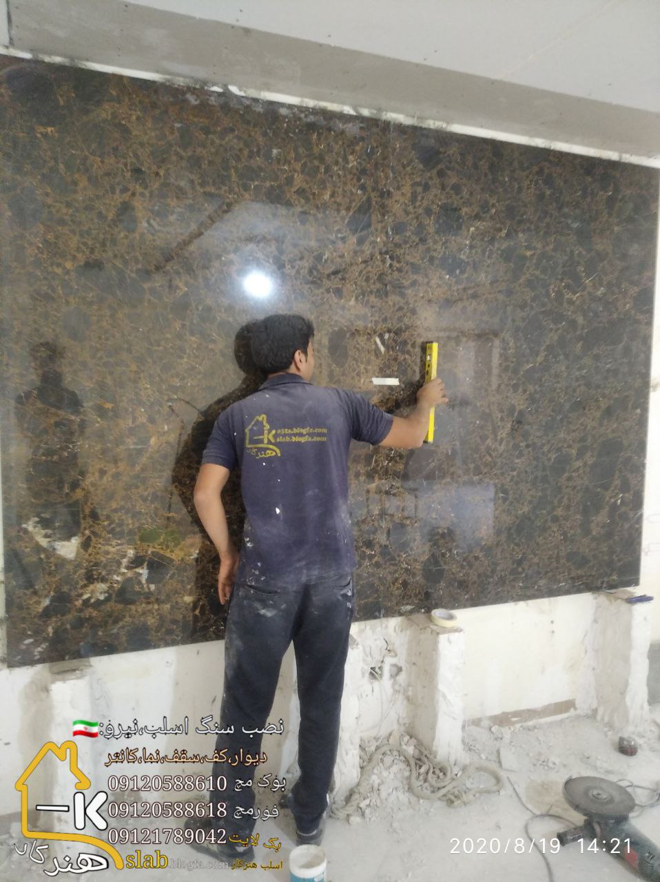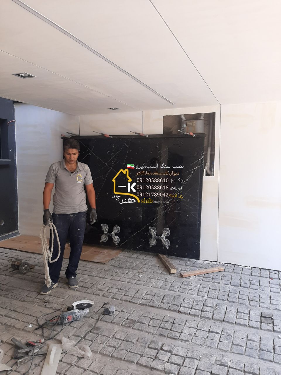 نصب سنگ اسلب پرتقالی دیوار سرویس مستر در کرج | مجموعه اسلب هنرکار