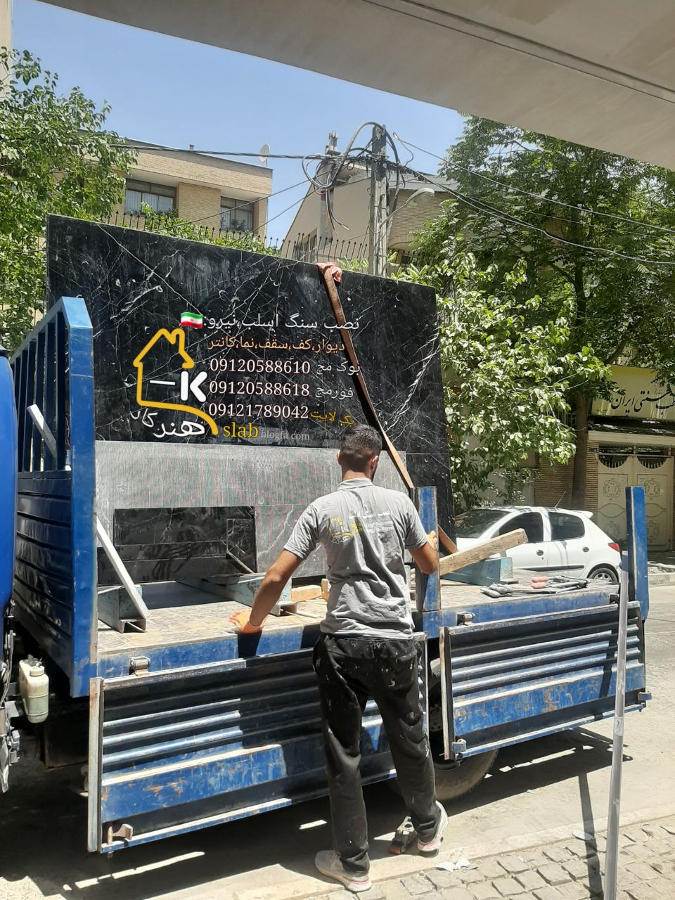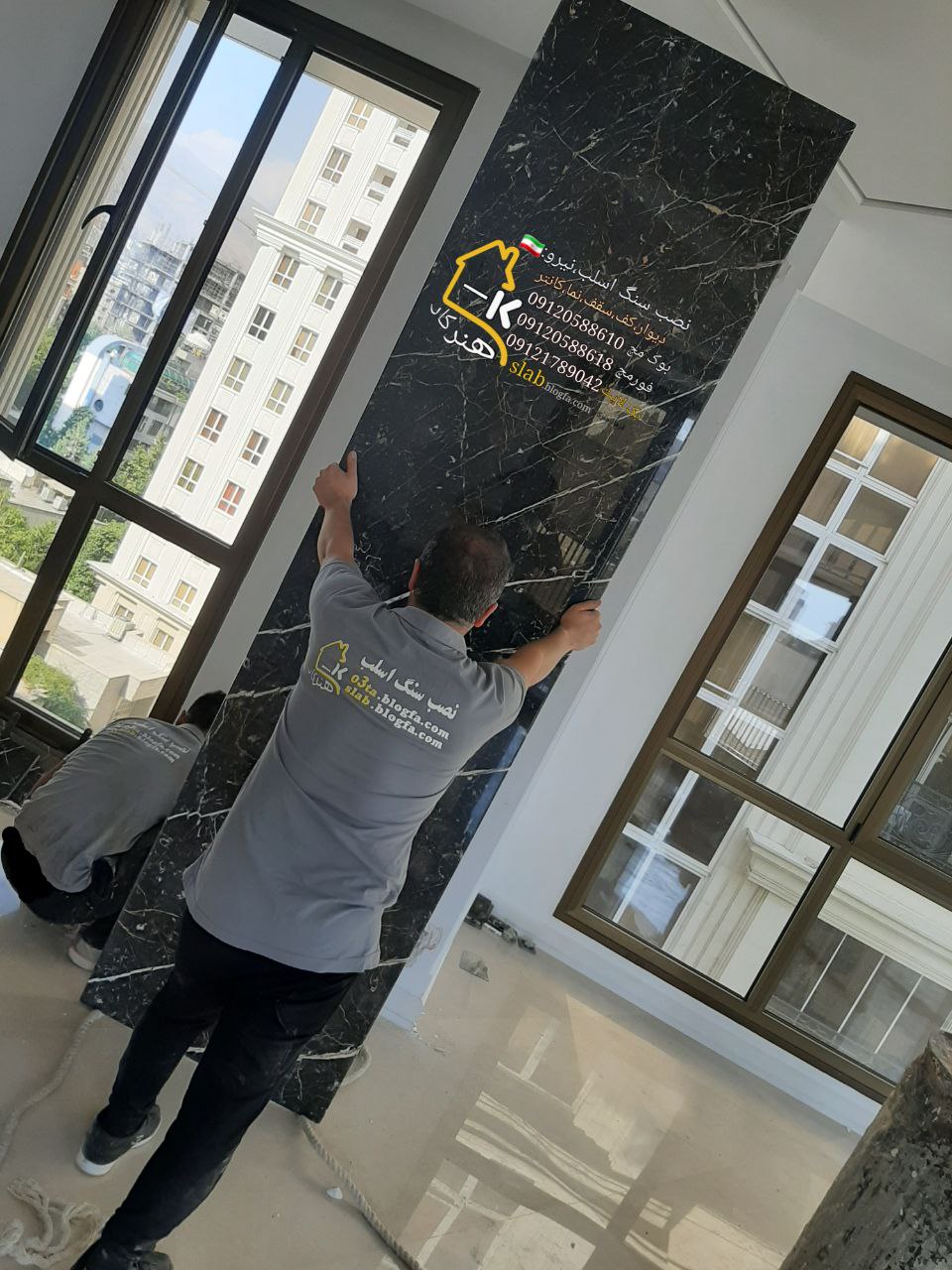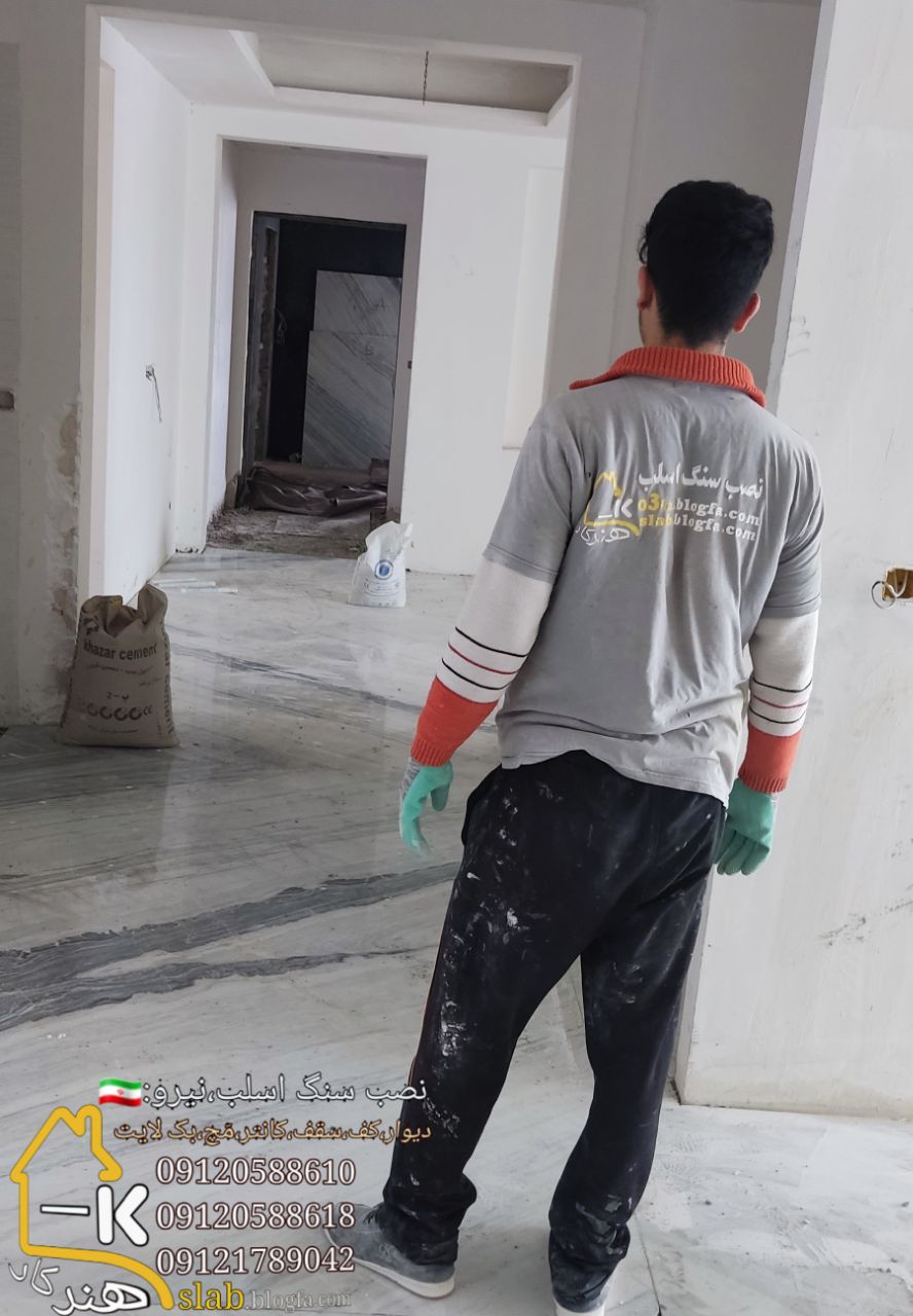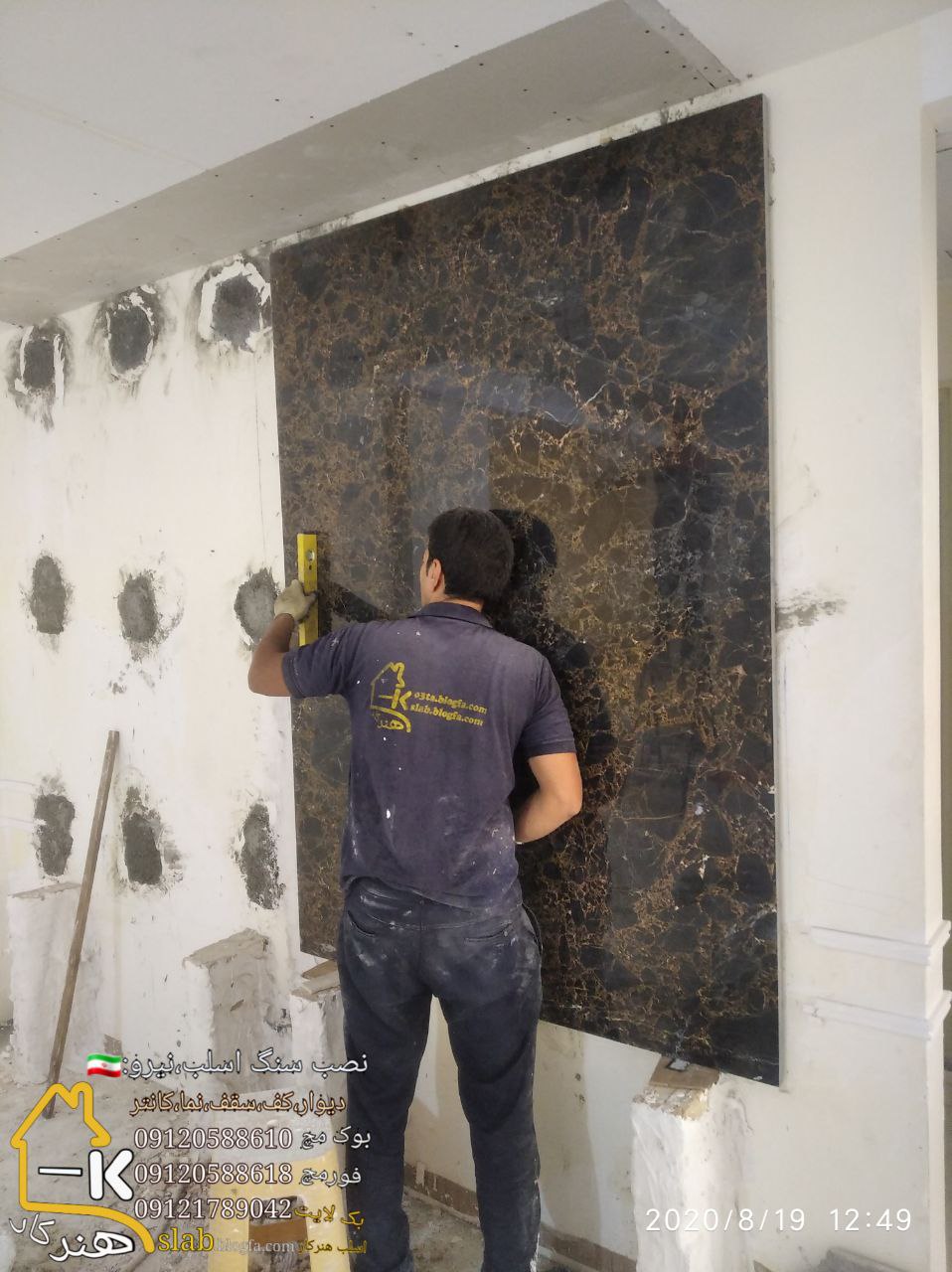 نصب سنگ اسلب پرتقالی دیوار سرویس مستر در کرج | مجموعه اسلب هنرکار